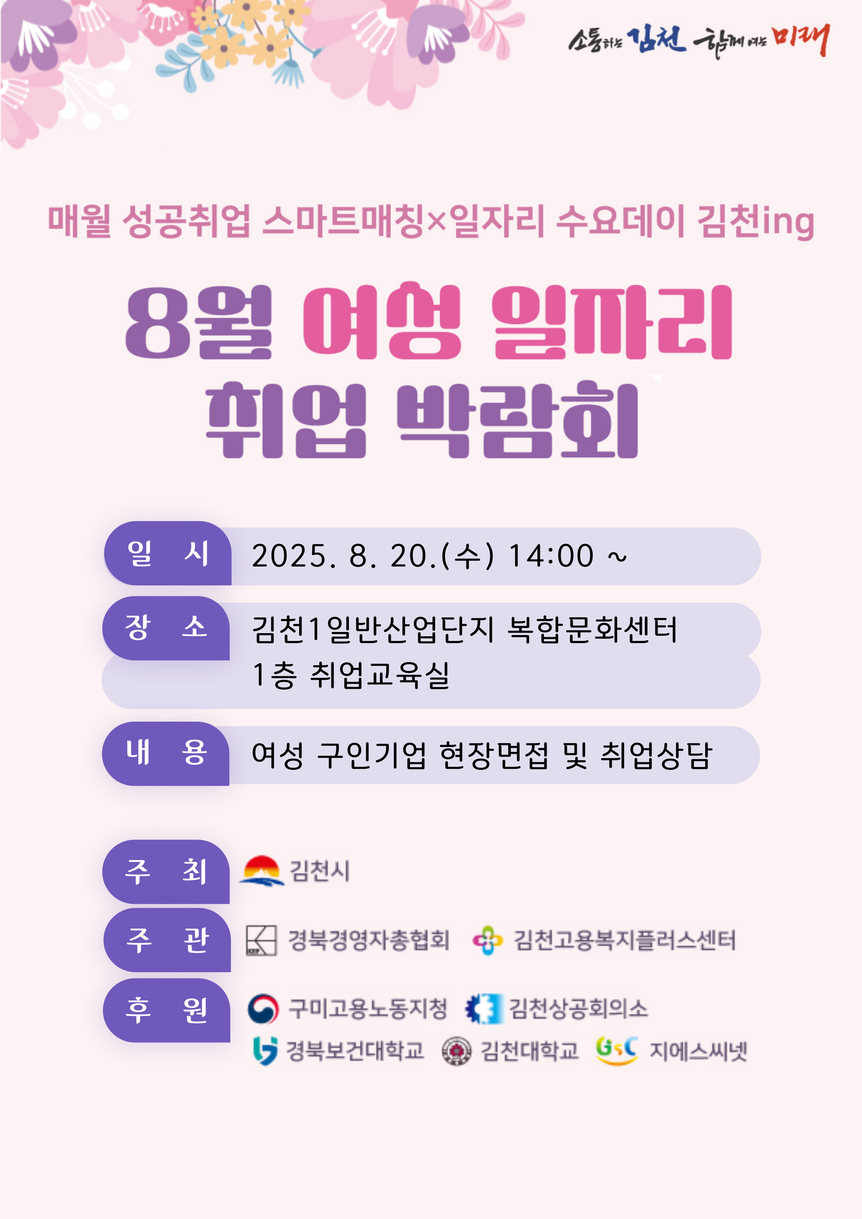- 김천 및 인근 지역 구직자들의 취업을 위해 마련된 행사이므로 많은 참여바랍니다.