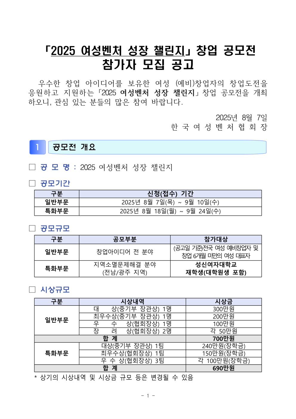 2025_「여성벤처성장챌린지(창업공모전」_공고문_신청서(사업계획서_등_양식_포함).hwp